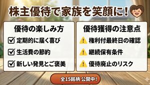 - 「株主優待」は家族の笑顔への投資。生活を豊かにする銘柄選び