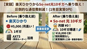 - 【実録】楽天ひかりからSo-net光10ギガへ乗り換え!圧倒的な通信費削減!