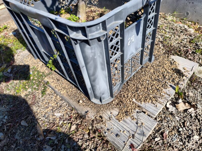 写真を見ての通り、コンテナの隙間から土がドバドバと漏れてしまっています💦