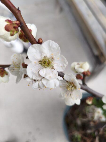 今回は、今まさに満開を迎えようとしている我が家の梅の花についてお届けします。