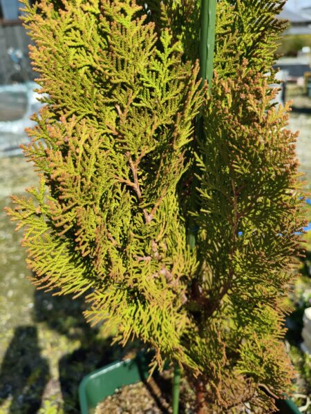 実はこれ、コニファーが寒さから身を守るための自然な現象だそうです。