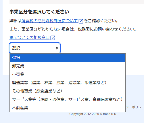 手順3:事業区分の選択(簡易課税を選択する場合)