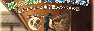 【春の来訪】ツバメが今年も戻ってきた!古い巣を壊すのは「リフォーム」のサイン?