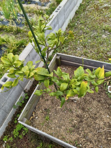 寒さに弱いレモンですが、その甲斐あってか、2本とも無事に冬を乗り越えることができました!