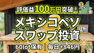投資トピック【祝・100万突破】メキシコペソ円スワップ投資!60lot運用のリアルな収支公開 メキシコペソ円の評価益が100万円を突破!60lot保有で毎日846円のスワップを得ているITエンジニア・ほりっぴーが、現在の運用状況とペソ高の理由を徹底分析。10円到達のシナリオからUSMCA再協議のリスクまで。父子家庭の資産形成ログ。 2026.04.12投資トピック